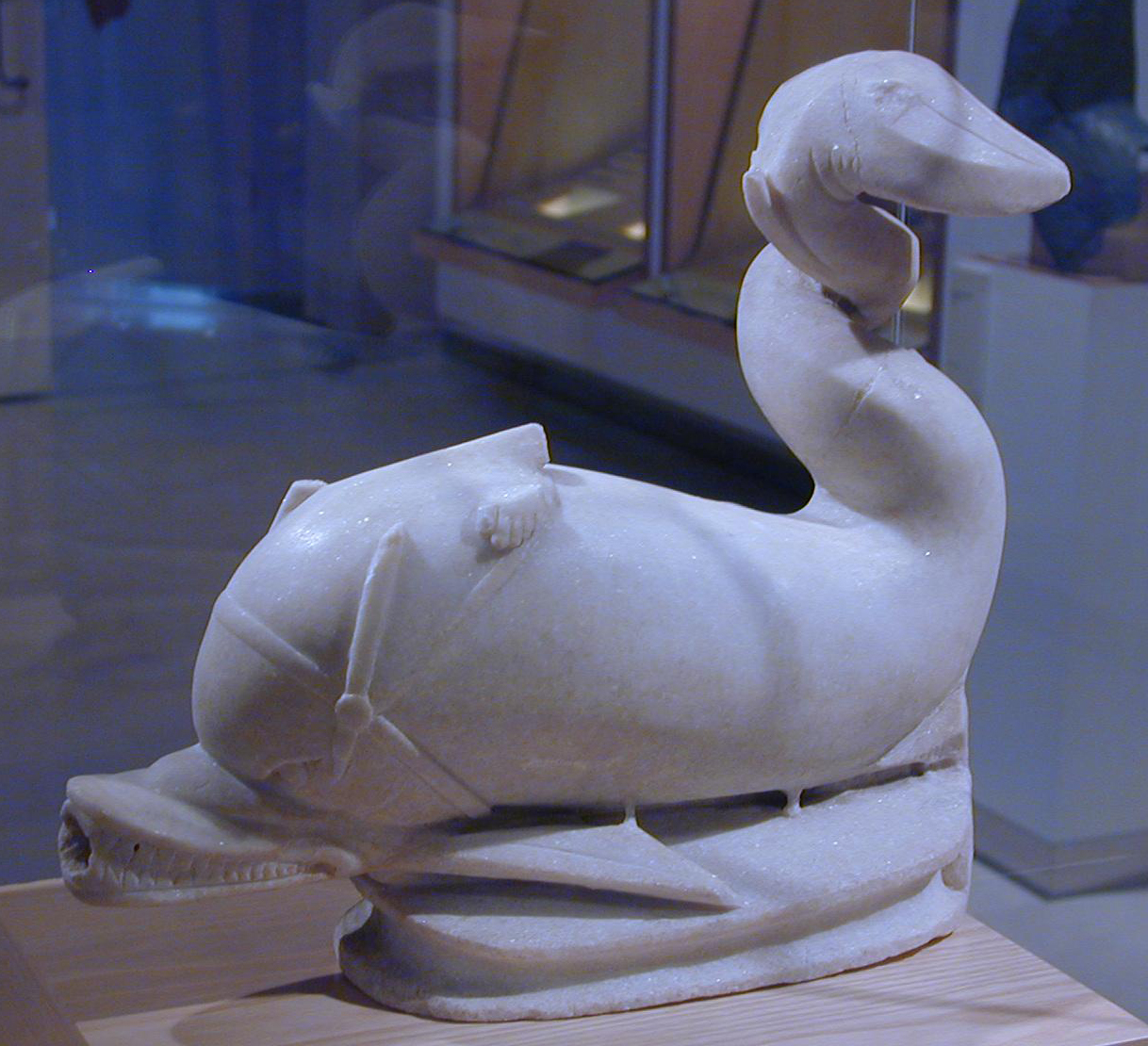 Hasta 2010 le faltaba el Eros que se conservaba en el Museo de Zaragoza, si bien con motivo de la exposición "L´altre Olimp. Els pirineus a l´antiguitat: societat, economia i religió", se procedió a unificar ambas partes.